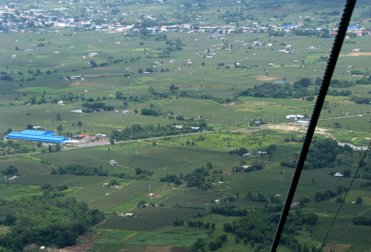 А пока я на священной для буддистов горе Та Ку, ловлю моменты в переменной облачности, чтобы сфотографировать виды равнины, сплошь в сельскохозяйственных угодьях. Равнинной земли во Вьетнаме не так уж много и каждый клочок земли приспособлен под выращивание риса, питахайи, а в более пересечённой местности – чая и кофе.