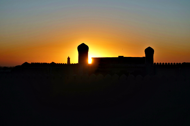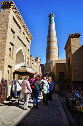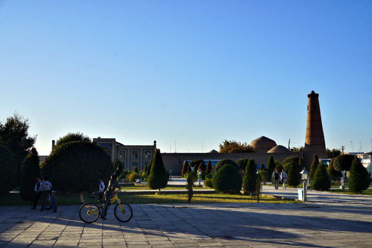 Для многих подъем на колоннаду Исаакиевского собора считается непростым. Уверяю, что минарет Ислам-Ходжа может дать сто очков «Исаакию». Лестница узкая, приходится разворачиваться и прижиматься спиной к стене, пропуская спускающихся. Ступени высотой в полметра. Первые метров 10 поднимаешься, вернее, ползешь, в полной темноте; только затем появляется освещение из редких узких проемов. Ну, а спускаться всегда труднее. Я не решилась делать это привычным для человека способом и воспользовалась тем, как это принято у раков. Как муэдзин взбирался каждый день, а по правилам, несколько раз в день, не представляю. Но, совершив этот подвиг, сполна была вознаграждена видами.
