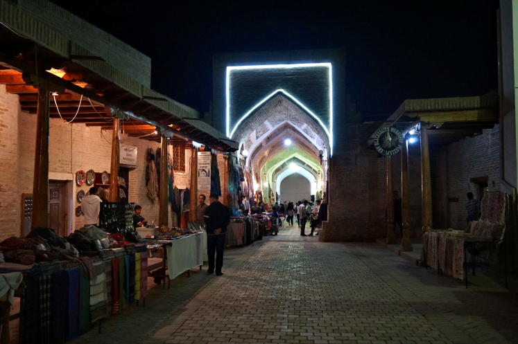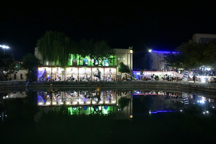 Коллеги пошли в отель, а я остановилась под чинарой. Тепло, легкий ветерок... Рассматриваю публику за столиками, слушаю музыку. Рядом стояло несколько человек. Программа вскоре закончилась, и народ стал расходиться. Молодой человек спросил, как мне понравилось. Слово за слово, нашли близкую тему. Он оказался студентом экономического факультета, летом подрабатывающим гидом. Интересовался впечатлениями от путешествия. Спросил, кто гид. «Ах, Дильбар! Вам повезло!» Дильбар, кажется, знают во всем Узбекистане. Еще в Ташкенте обратила внимание, что гиды с ней постоянно раскланивались. Поделился своими планами на будущее, думает заняться турбизнесом. Позабавило, что его огорчало отсутствие в Узбекистане государственного бренда. «Куда едут туристы (речь шла о европейцах), в Бухару, Хиву, Хорезм (даже это знают!), а Узбекистан не знают. Хочу, чтобы знали, как знают Россию!» Однако!.. Не стала напоминать, что Узбекистан, объедив ханства и эмираты, появился только в 1924 году, и то только в составе СССР. Да и едут сюда посмотреть средневековую Среднюю Азию. Но, мечтать не запретишь. Попрощались. Пошла в гостиницу. День закончился.