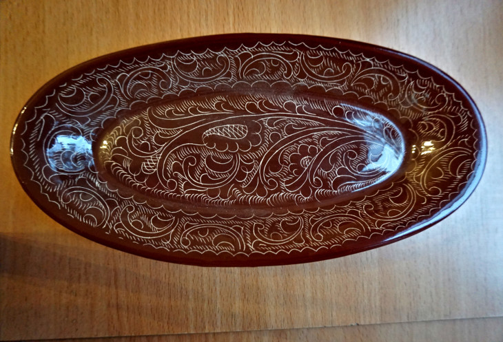 Мастер научил, как отличать ручную керамику от заводской. На донышке посуды ручной работы всегда будет виден след от гончарного круга. «Выдает» ручную работу также стопка посуды. Если пиалы входят одна в другую идеально, значит это фабричная работа. Пиалы ручной работы в ровную стопочку не составить – каждая из них уникальна и несколько отличается от своих собратьев. Каждая ручная работа маркируется клеймом мастера. Правда, это может означать только ручную роспись. В Хиве купила в качестве сувенира вот такую вещь.