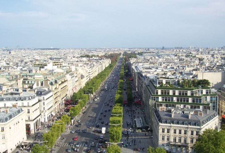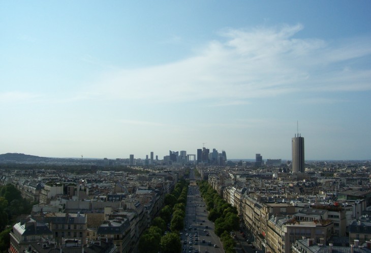 Со смотровой площадки арки довольно симпатичные виды открываются: на запад на Большую арку Дефанс