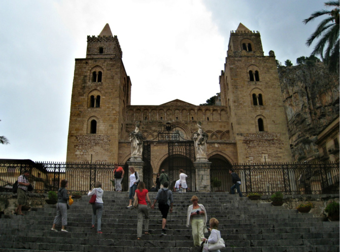 Этот нормандский храм с византийскими литургическими писаниями, был спроектирован и построен исламскими архитекторами и рабочими, которые после изгнания арабов все еще проживали на Сицилии. Именно благодаря синтезу трех культур собор получил свой уникальный и необыкновенно примечательный облик.