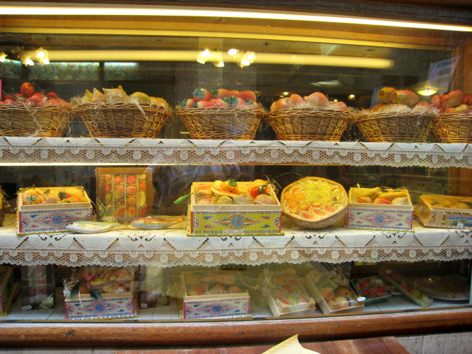Если от марципановых фруктов я была в восторге, то, превозносимое гидом канноло – сахарная трубочка с кремом из рикотты, мне не понравилось: слишком приторное, даже не смогла его доесть.