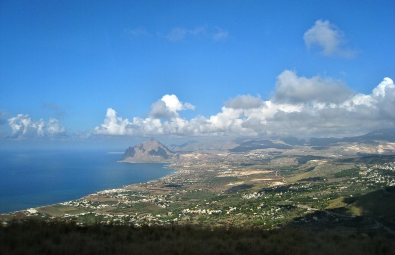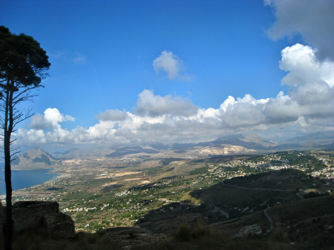 Маленький и очень древний город Эриче находится на вершине горы. Он часто прячется в облаках. Говорят, что самые удивительные картины бывают в облачную погоду. Тогда можно наблюдать или только ноги, шагающие по удивительной брусчатке города, или торсы, плывущие в молочной пене. Но нам не повезло с облаками.