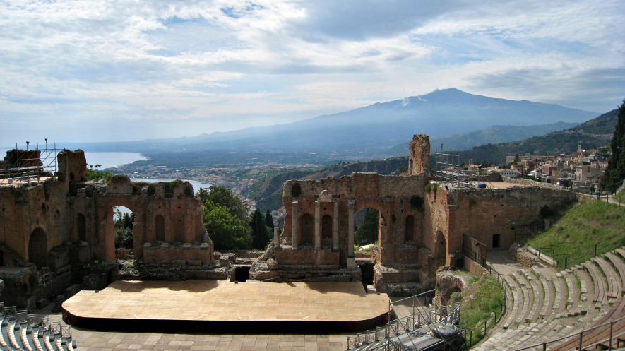 Самый невероятный вид открывается с площадки греческого театра: на бирюзовое море, раскинувшееся до побережья Калабрии, на Сиракузы и курящуюся Этну.