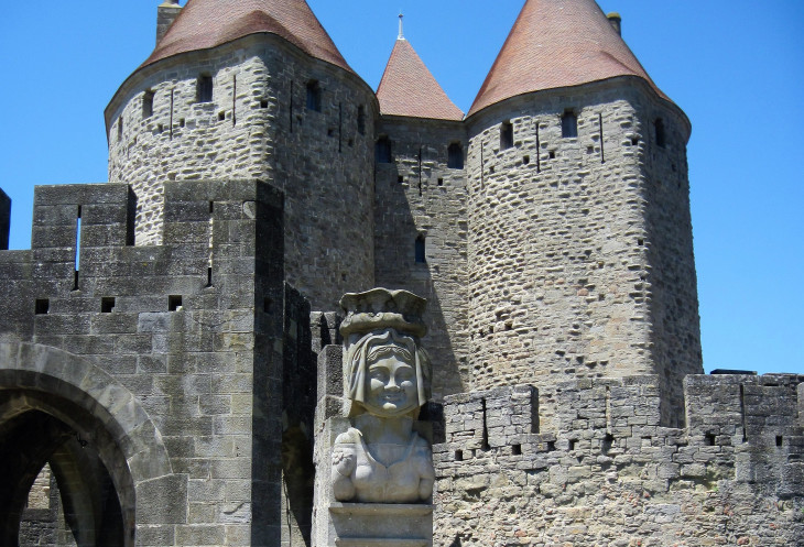 Это она встала во главе рыцарей-защитников города после смерти мужа. Согласно легенде, спасла город от захвата армией Карла Великого, пять лет осаждавшей крепость. Легенду эту вам любой экскурсовод расскажет. Про свинью, мешок зерна и Карла Великого.