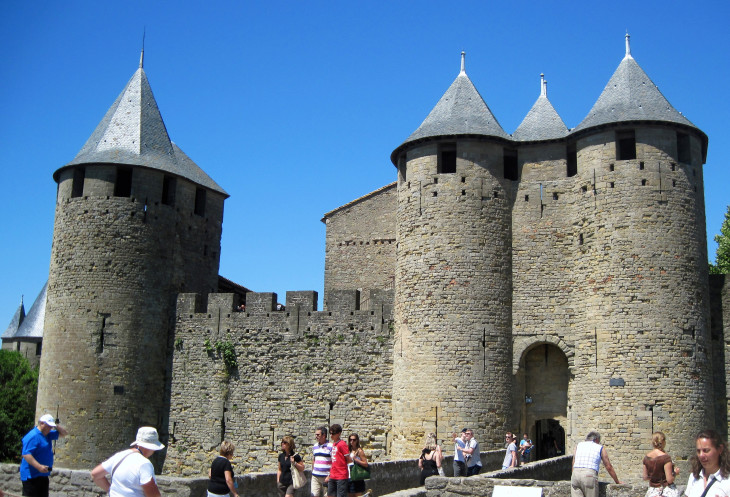 За крепостными стенами Каркассона - построенный в 12-ом веке замок графов Тренкавелей.