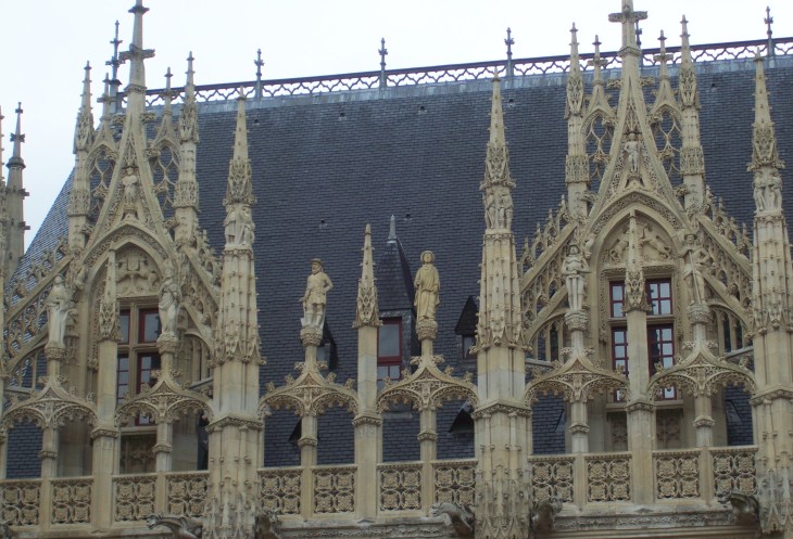 Дворец юстиции - Tribunal de Grande Instance. Самая старая часть дворца — западное крыло, построено в 1499 г. для Шахматной палаты, которая была превращена в Парламент Нормандии в 1515 г. Северная часть дворца законченная в середине 16 века