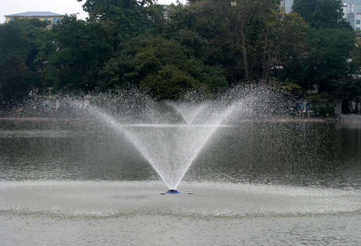 После заселения и ужина я отправился на прогулку по ближайшим окрестностям. Очень хотелось своими глазами увидеть праздничный вечер столицы Вьетнама. Количество мотобайков на улицах не уменьшилось, но мне удалось успешно добраться до берега озера. На площади, где меня заворожили звуки «живой музыки» в исполнении самодеятельного оркестра, когда я искал отель, гуляли люди. Но самого оркестра уже не было видно, хотя чудесная музыка буквально витала в воздухе.