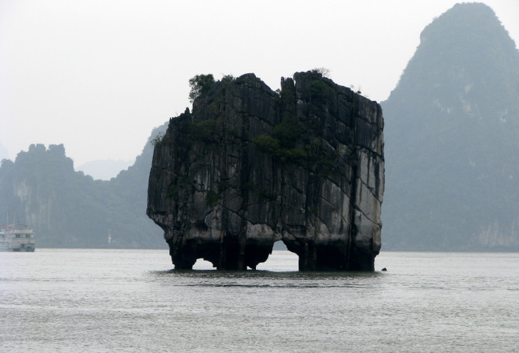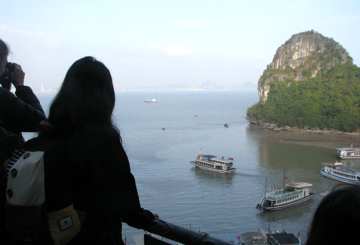 Поездка на автобусе из Ханоя к бухте оказалась против ожидания не столь утомительной. Главную роль сыграла хорошая компания. Свободное место в небольшом автобусе для меня нашлось рядом с молодой девушкой явновыраженной азиатской внешности. Её прекрасный английский язык и непременная вежливость в общении скрасили четырёхчасовую поездку. А просветы в облаках ещё больше улучшили настроение.
