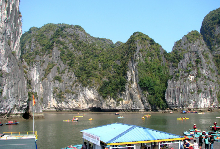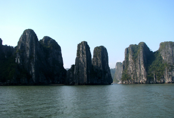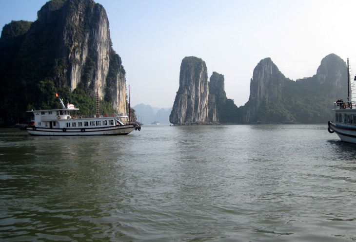 В порту, откуда отправлялся наш прогулочный катер, оказалось очень много туристических групп, как в любом знаковом месте. Гид сразу назвал номер нашего катера 12, чтобы не потеряться в этой многоязычной толпе. Мы с Фука (так звали мою очаровательную спутницу) решили держаться вместе. И я предложил ей услуги «персонального фотографа», так как её спутник остался в Ханое. А небо тем временем становилось всё светлее и, когда наш катер вышел на открытую воду, скрытые дотоле в дымке скалы, начали приобретать всё более чёткие контуры.