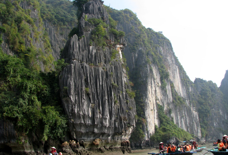 Нашими попутчиками в лодке оказалась семья из Малайзии. И Фука время от времени вела с ними беседу, так как однажды была в их стране. Я же расположился на носу лодки, и неустанно фотографировал во время получасовой прогулки по спокойной воде. Виды скал, вздымающихся на десятки метров, практически вертикально, очень напоминали то, что я имел возможность наблюдать в Таиланде.