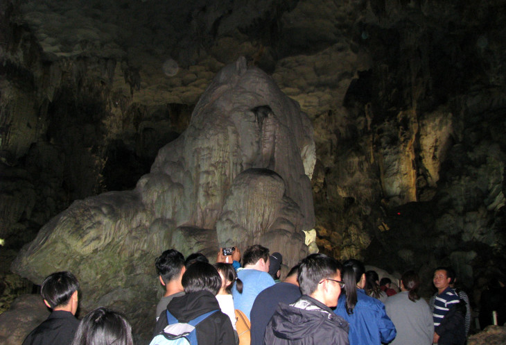 Гид рассказывал о том, на каких животных похожи отдельные сталагмиты и сталактиты.