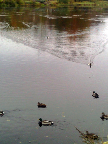 Народу было немного, в вагоне прохладно. По ходу поезда встающее солнце било в глаза, но за ним виднелась плотная полоса темной облачности шириной во весь горизонт. Пересев, я смотрела, как по ходу движения золотых деревьев становилось все больше и больше, и задремала. Из под сиденья дул теплый воздух и дреме мешали только регулярные сообщения о станциях и различных правилах. Впервые я услышала, что в двух вагонах из 8 есть туалеты. Периодически носили пирожки и пластыри, но газет и журналов, к сожалению, никто не предлагал. Грабительская цена на пирожок с яблоками в 55 рублей очень эффективно умерила аппетит.