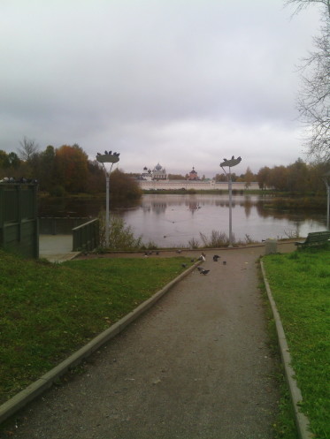 На улице было довольно зябко и я энергично зашагала через к монастырю. Он находится в 10 минутах от жд вокзала по прямой. У меня обещанные сайтами 10 минут превратились в полчаса, ибо я все время оглядывалась, фоткала, и моя энергичность тоже давала о себе знать. В целом я уже поняла, что Тихвин это не туристический город, хотя некоторые стрелочки направлений здесь все- таки имеются. Это очередной параллельный мир- двухэтажный и неспешный, этакая точка в простанстве и времени, соединяющая и скрепляющая их. Я встречала такие города- Тутаев, Слоним и тп.
