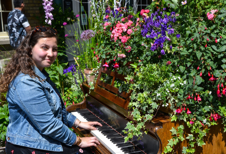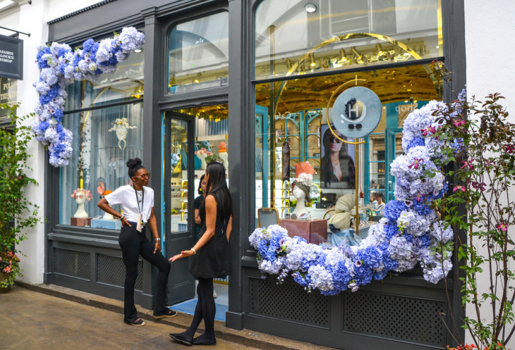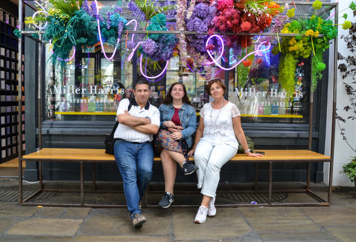 Но не только магазинами и бутиками привлекает к себе Ковент Гарден. В этом месте постоянно проводятся какие-нибудь инсталляции. В тот момент, когда мы были в Лондоне, все в Ковент Гардене было отдано на откуп цветам. Гирлянды из цветов, платья из цветов, фигуры из цветов... Куда ни брось взгляд – цветы, цветы, цветы...