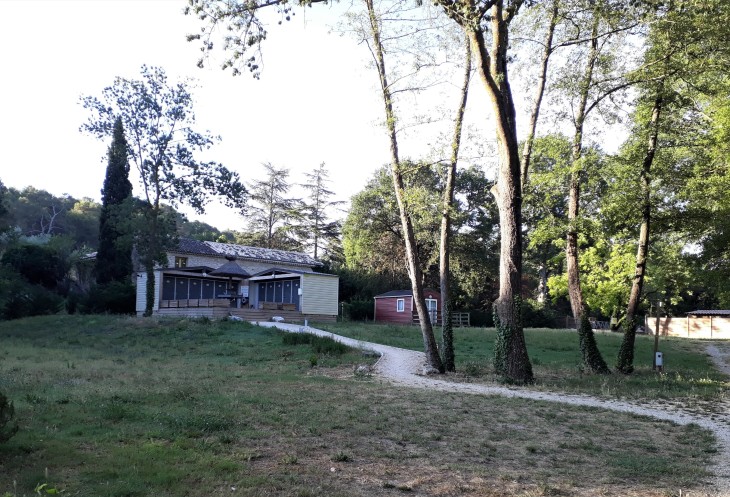 Местоположение кемпингов во Франции удобное, часто в черте города, порой в шаговой доступности от достопримечательностей. Такой вариант был у нас в Авиньоне.  Кемпинг Багатель находился в непосредственной близости от центра города, на острове Бартлас, который делит Рону на два рукава. В Роне, конечно, никто не купается. Во всяком случае, в городской черте. А наш кемпинг был с бассейном. Все места общественного досуга в кемпингах работают по расписанию. В этом кемпинге – до 20 часов. Мы успели урвать час, чтобы освижиться перед вылазкой в город. Территория у кемпинга большая и зеленая. Место больше похоже на парк, особенно со стороны. Деревья хорошо поглощают городские шумы, ощущение, что ты далеко от городской суеты. Если выйти за территорию кемпинга, к реке, то открывается великолепный вид на Папский дворец, мост Сен-Безене.