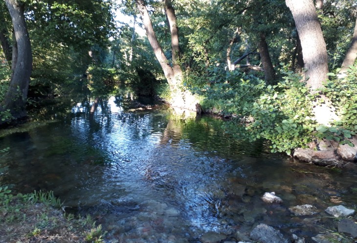 Будучи в этом кемпинге, мы убедились, что вода в Сорге действительно холодная. Особенность Сорга в том, что в любое время года вода примерно одной температуры, 12–13 градусов. На территории кемпинга речка больше похожа на широкий ручей. Опустила ноги в воду – Б-р-р!! Но усталость, как рукой сняло!