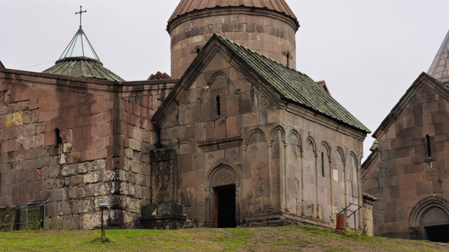 Церковь Григора Лусаворича небольшая, но украшена каменным декором. Особенно красиво выглядит портал с ажурным тимпаном.