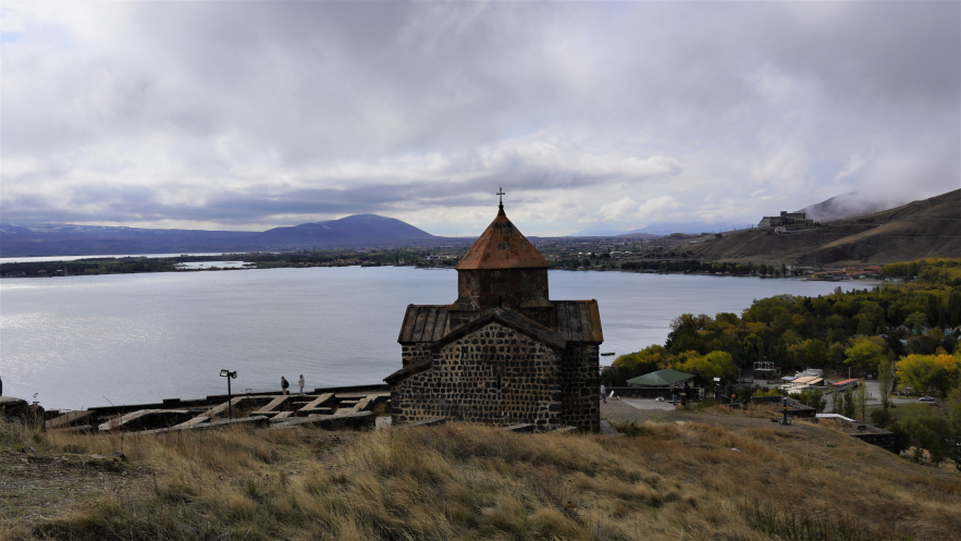 Монстырь стоит на высоком холме, на полуострове. Изначально это был остров, но в 1950-е годы остров превратился в полуостров, когда задумали осушать Севан (хорошо, что вовремя одумались!).