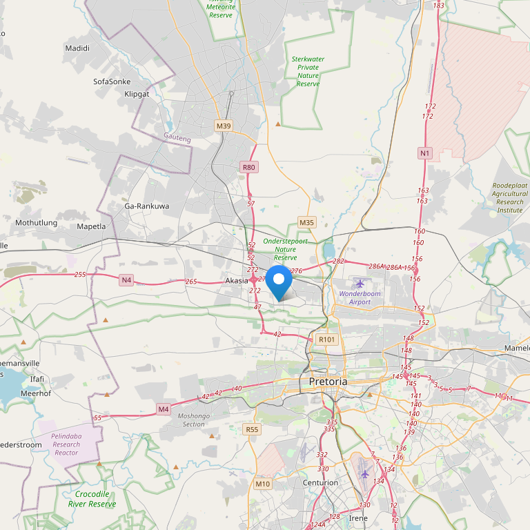 | Адрес | ЮАР, пров. Гаутенг, река Апиес, 15 км на север от г. Претория. |