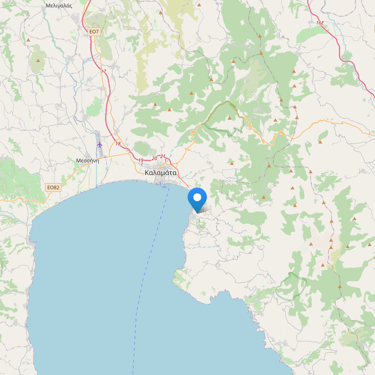Море в этом месте Мессинийского залива в основном спокойное, по соседству находится гавань Каламаты. Рядом возвышаются кряжи горного массива Тайгет. В море выходит длинный бетонный мол, на котором можно сфотографироваться на фоне залива, гор и города. По вечерам здесь можно наслаждаться великолепными закатами.
