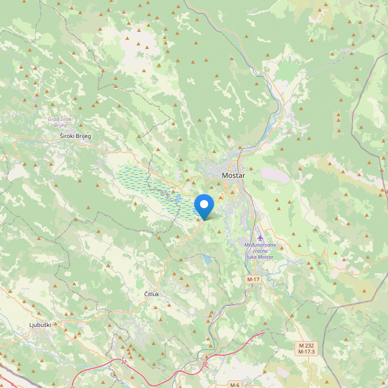 Мечеть была небольшая, с каменной крышей и резным минаретом. Предполагают, что это самая старая мечеть Мостара на правой стороне Неретвы и первая постройка в этой части течения реки Радоболя. Возле мечети начал расти квартал, движение возле мечети стало активным, и, чтобы оптимизировать маршруты, понадобился мост над рекой Радоболя. Так появился Кривой мост.