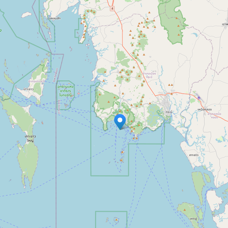 Со стороны острова он закрыт высокими известняковыми скалами и горами, поэтому добраться до него можно только по воде. Прежде всего это место привлекает своими живописными пляжами Phra Nang Beach и Rai Lex West с белым песком и известняковыми скалами, на которые можно забраться, имея альпинистское снаряжение.