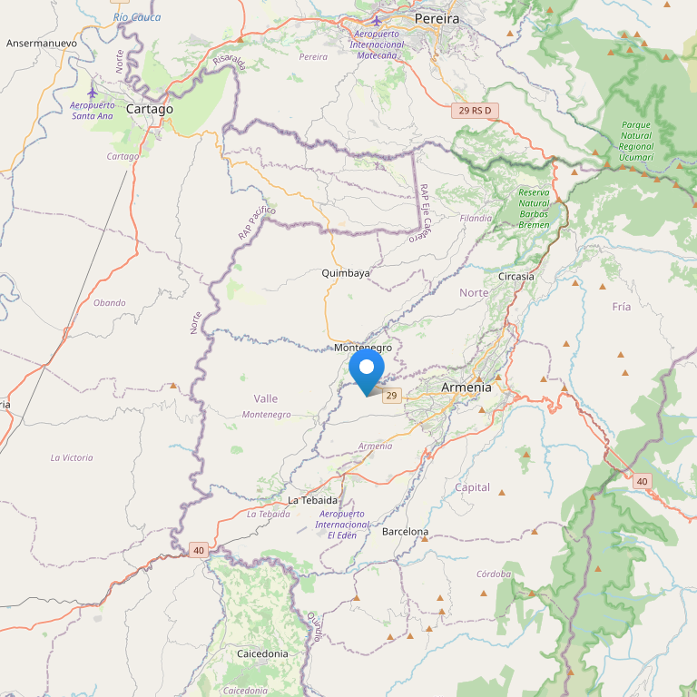 | Адрес | Km 6 via Montenegro Pueblo Tapao Quindio, Montenegro, Колумбия |