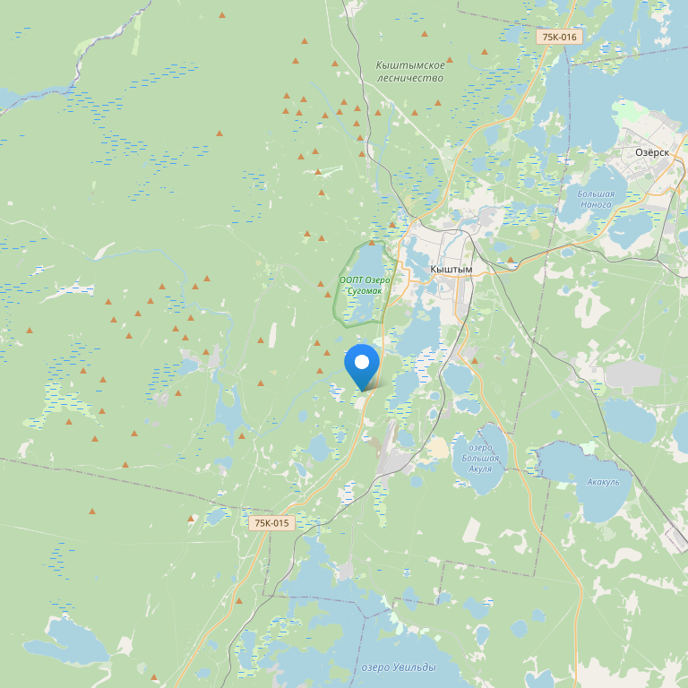 | Адрес | Россия, Челябинская область, Южный Урал, г. Кыштым, гора Сугомак. |